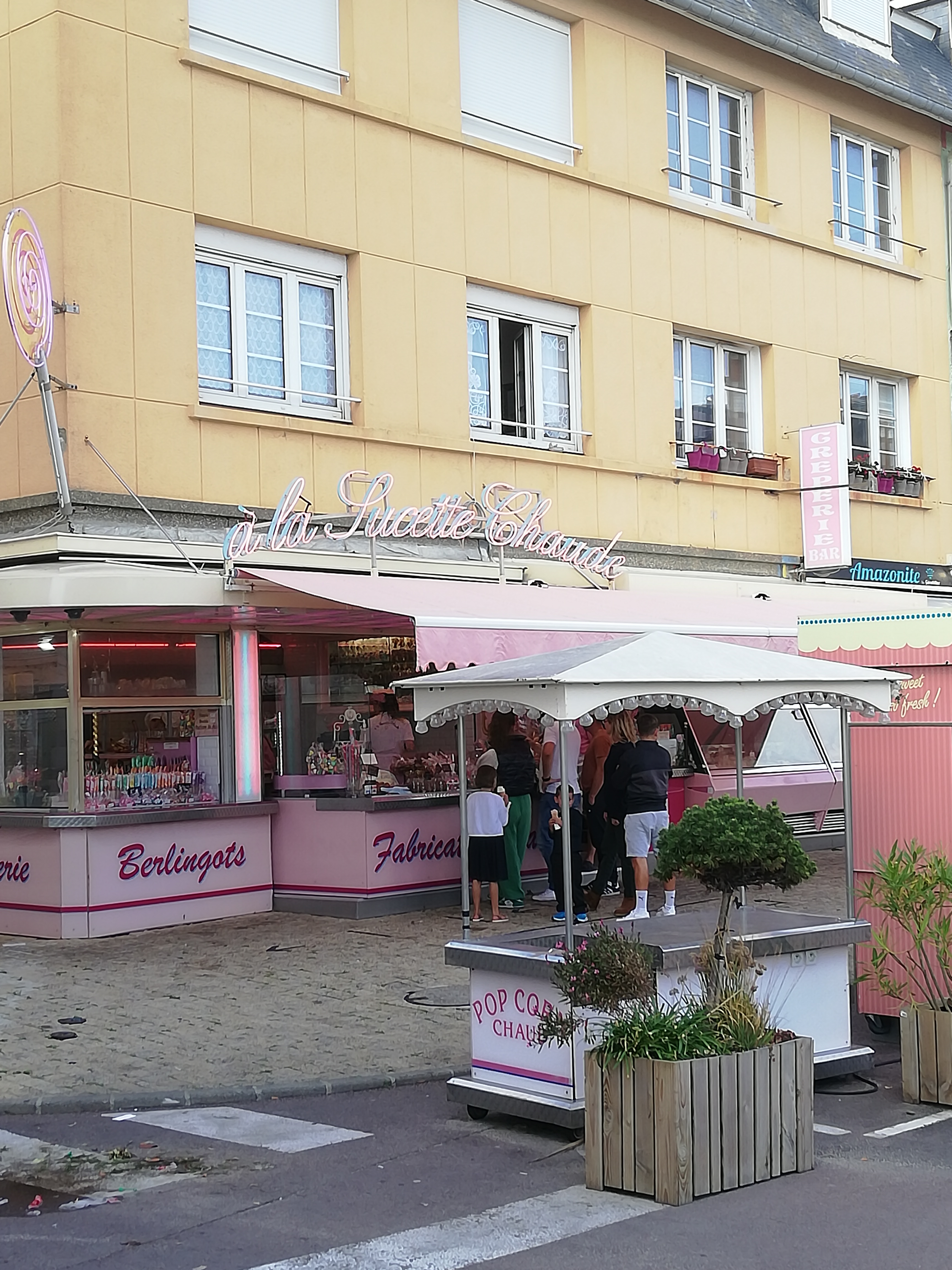 Agon Coutainville l’endroit de mon enfance ou j’ai passe qq heures à contempler la mer, mais c’est aussi passer devant la SUCETTE CHAUDE et profiter de ces belles couleurs et l’effervescence que cela apporte à la place. Maintenant adulte, j’ai pu partager avec mon fils des glaces et des gaufres, et on s’est régalés. Il peut y avoir de l’attente devant le stand des beignets gaufres crêpes … pas si grave quand on est en vacances mais pour plus de clarté il faudrait peut être penser à signaler l’endroit où on commandes et l’endroit où on attends pour récupérer notre commande. Vivement les prochains goûter en famille après un bonne baignade
