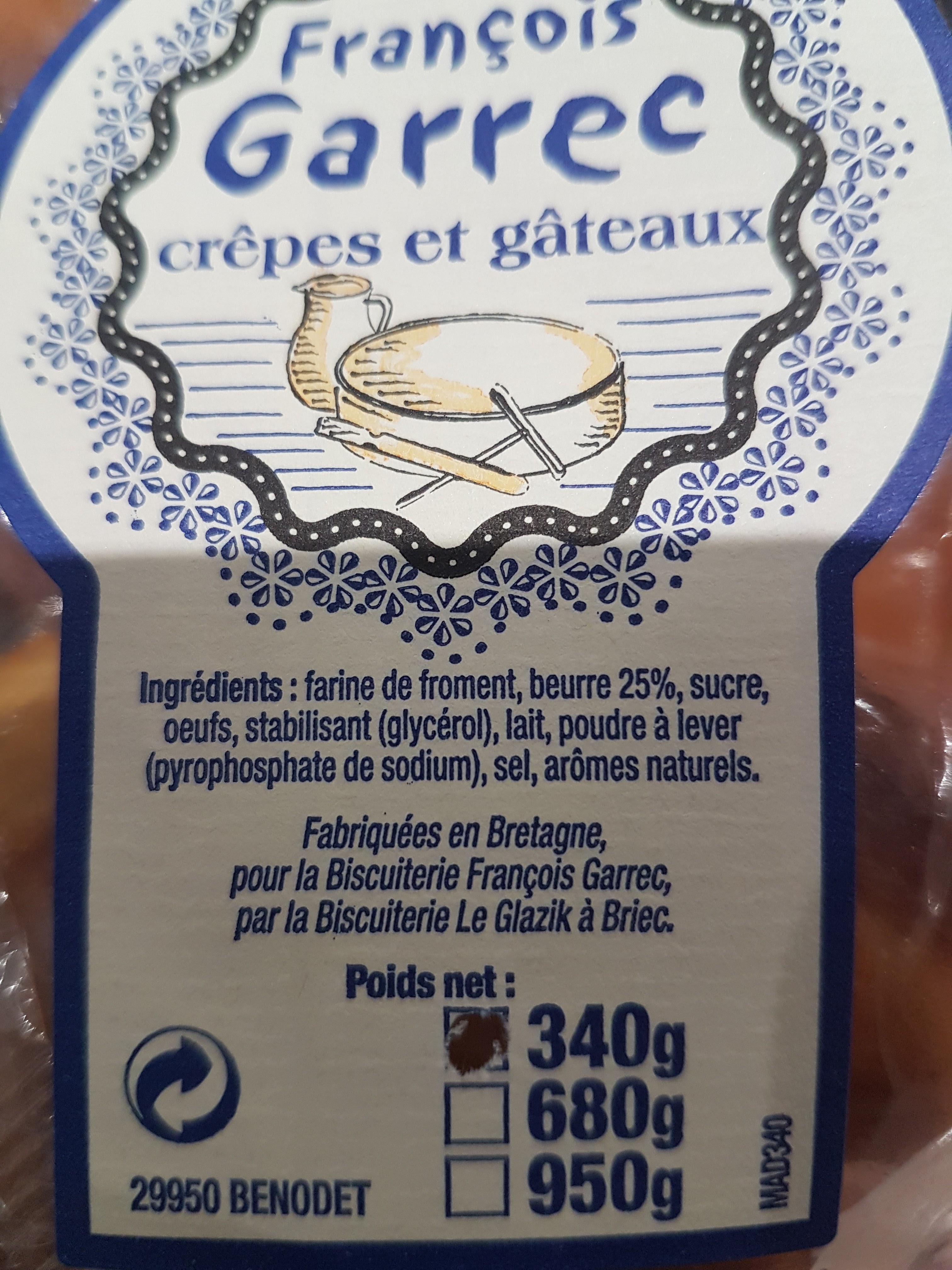 Attention ! J'ai acheté et offert des gâteaux bretons étiquetés François Garrec mais (écrit en petit !) Fabriqués par Mistral à Semur-en-Auxois dans le 21 !! Et un sachet de palets étiquetés Garrec fabriqués dans une biscuiterie de loudéac, c'est honteux 😱