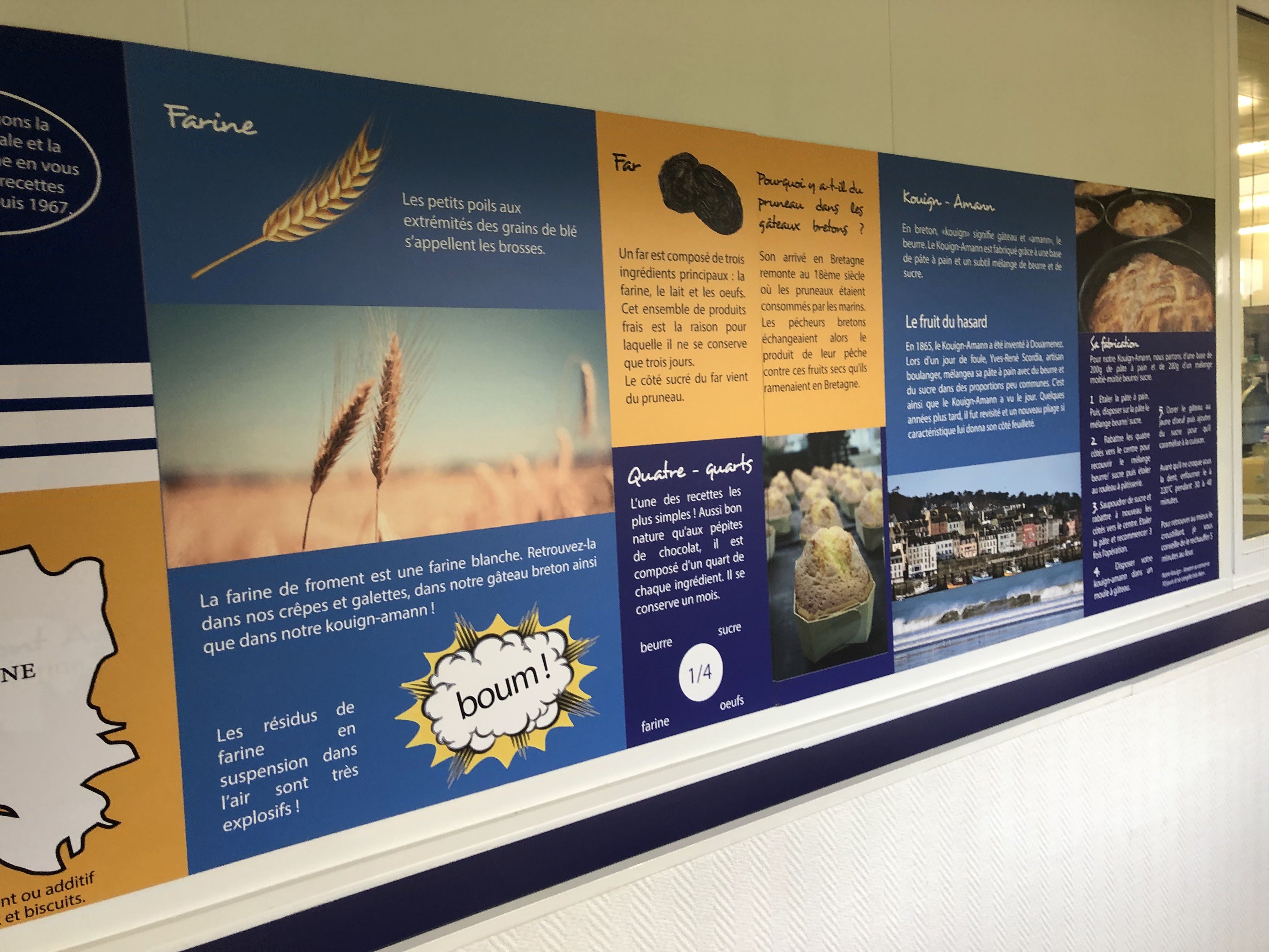 Quelques panneaux sur les farines. On peut voir les produits se fabriquer. Bonne boutique bien achalandée.