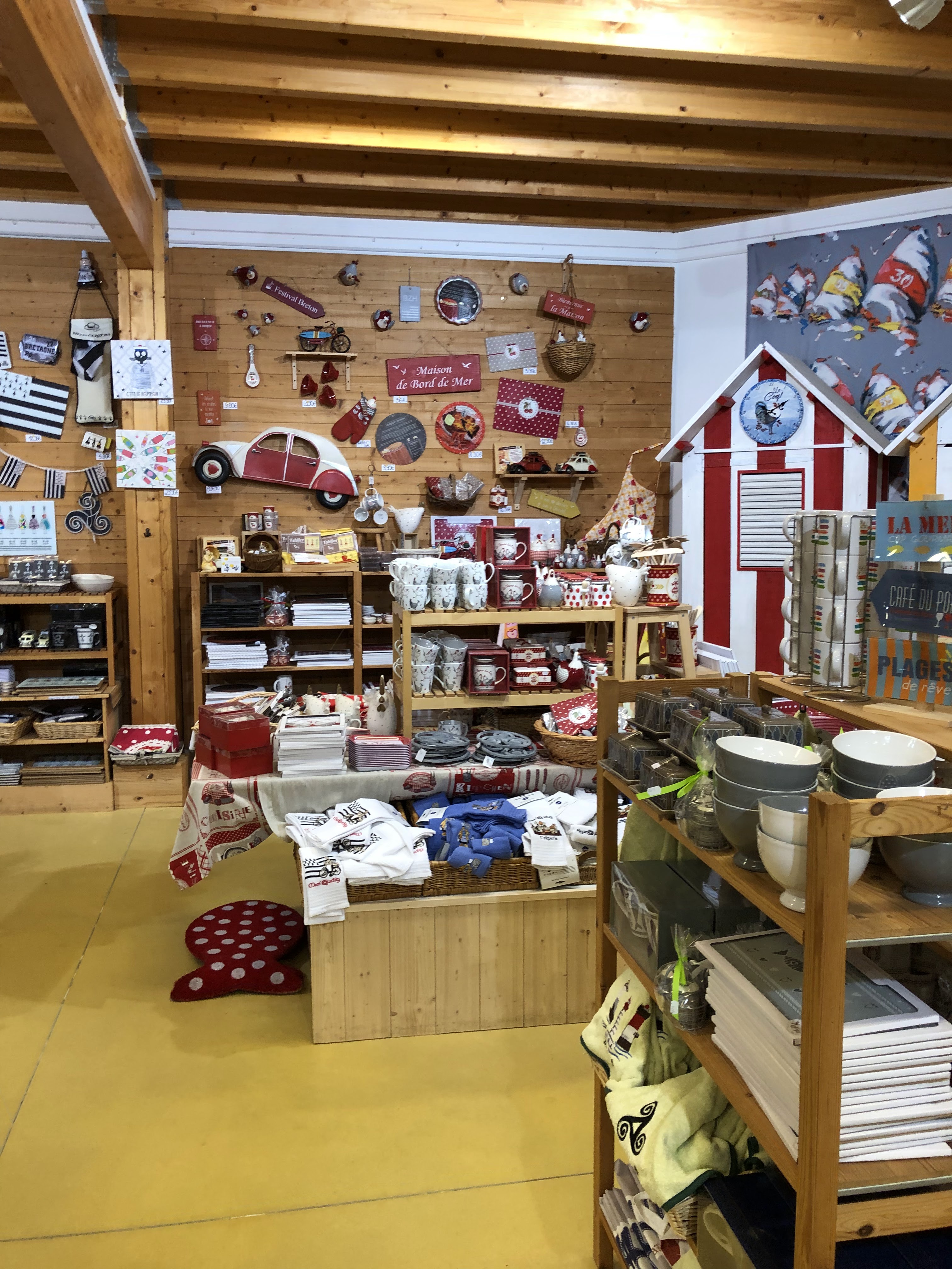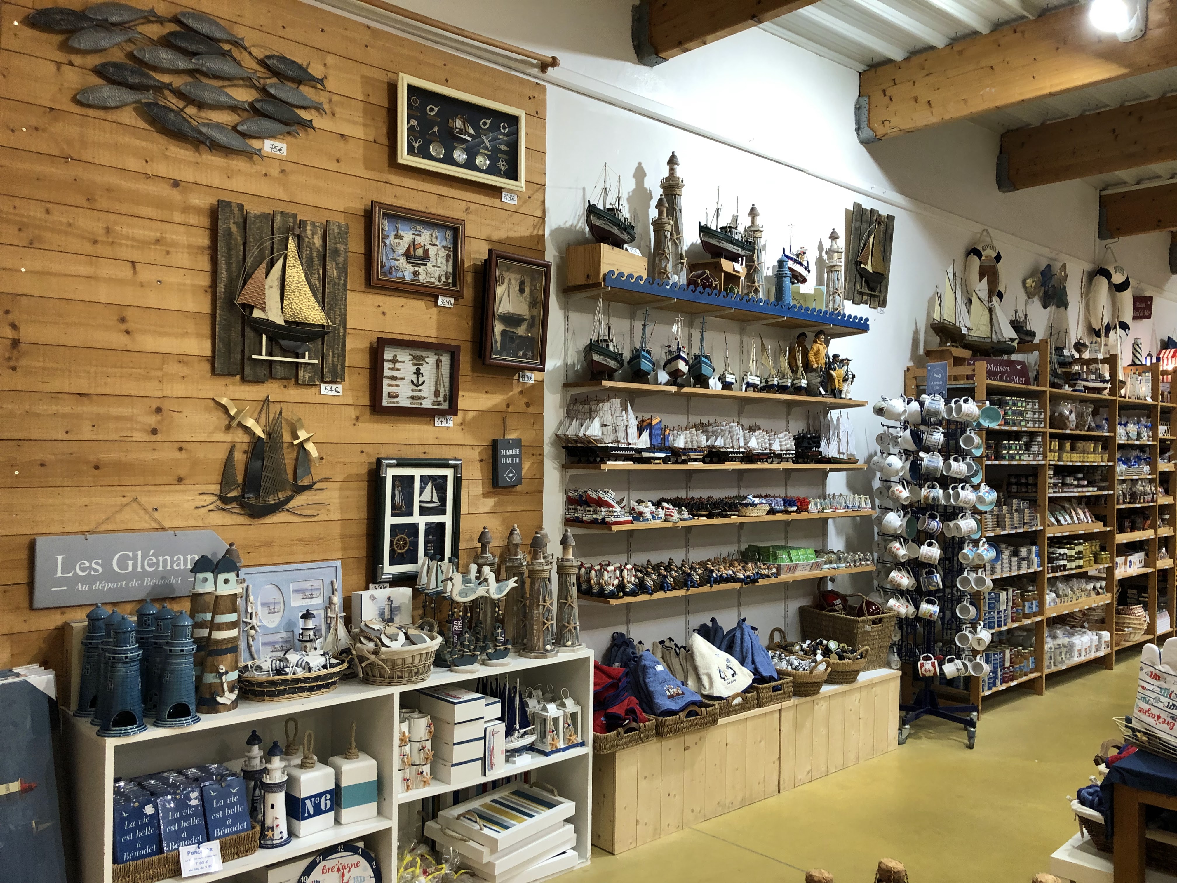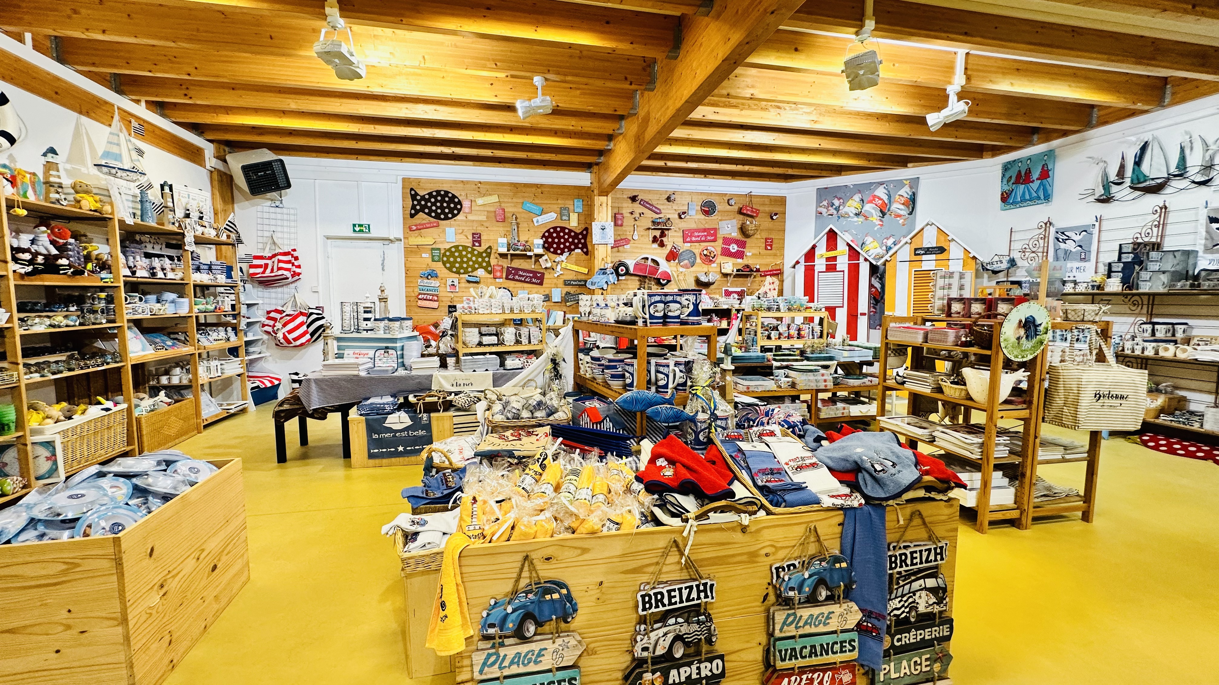 Superbe magasin aux odeurs de crêpes, de quatre quarts et de car. Un régal. Beaucoup de souvenirs, d'objets décoratifs orientés sur la pêche et la mer. A visiter sans hésiter. Le personnel est accueillant et le sourire aussi