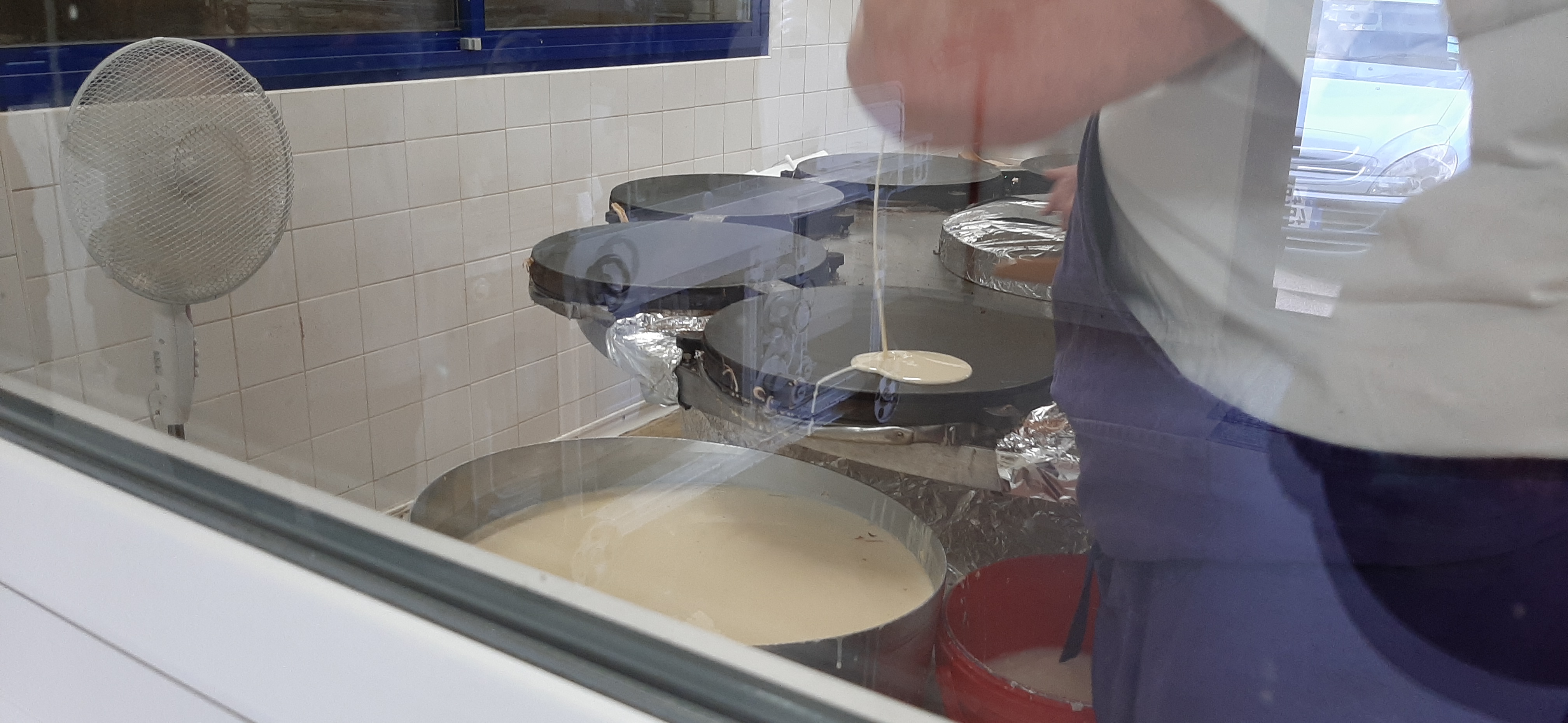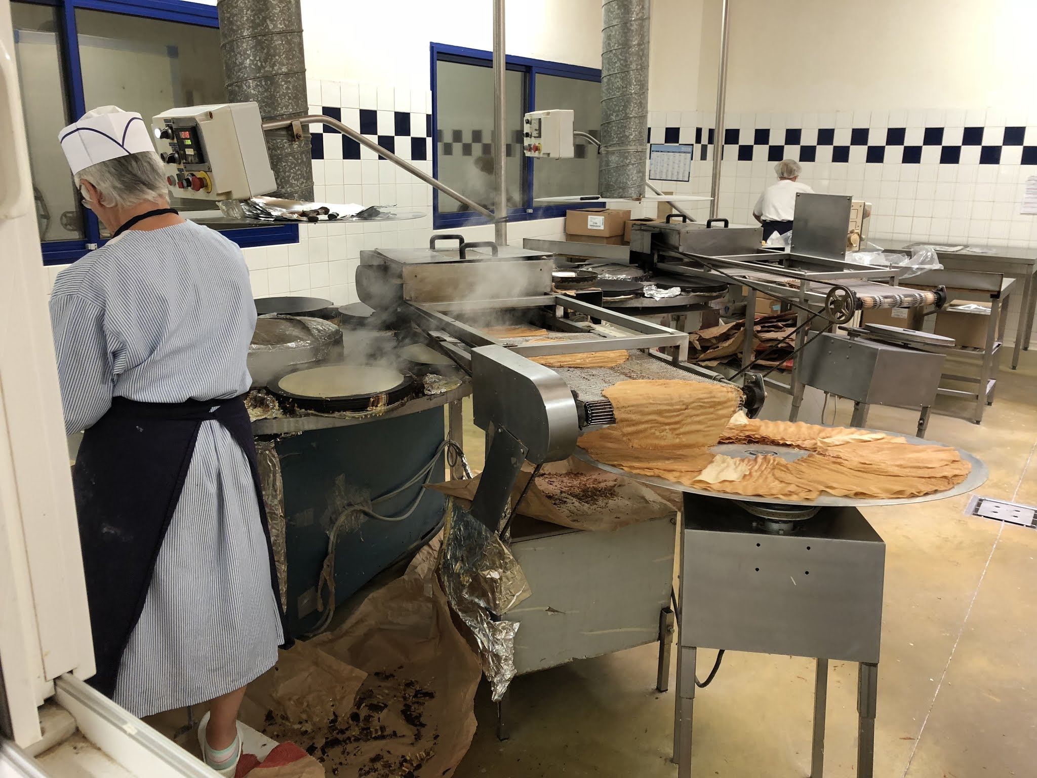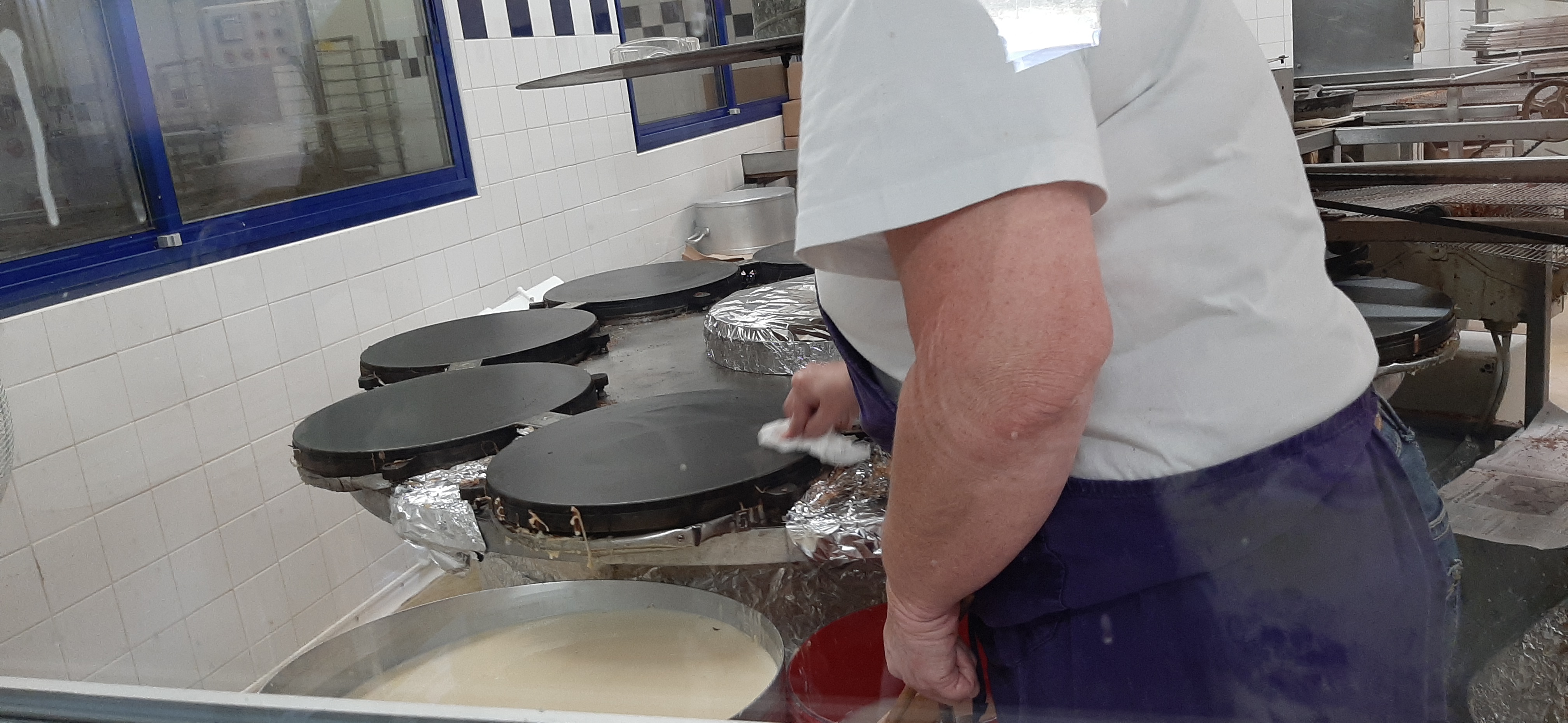 Profitez de la visite gratuite de 10h30 pour voir les coulisses de la fabrication des crêpes, galettes et autres gâteaux de la maison. Merci à Angelina pour ses commentaires et bravo à tous ceux que nous avons observé travailler à nous régaler.
