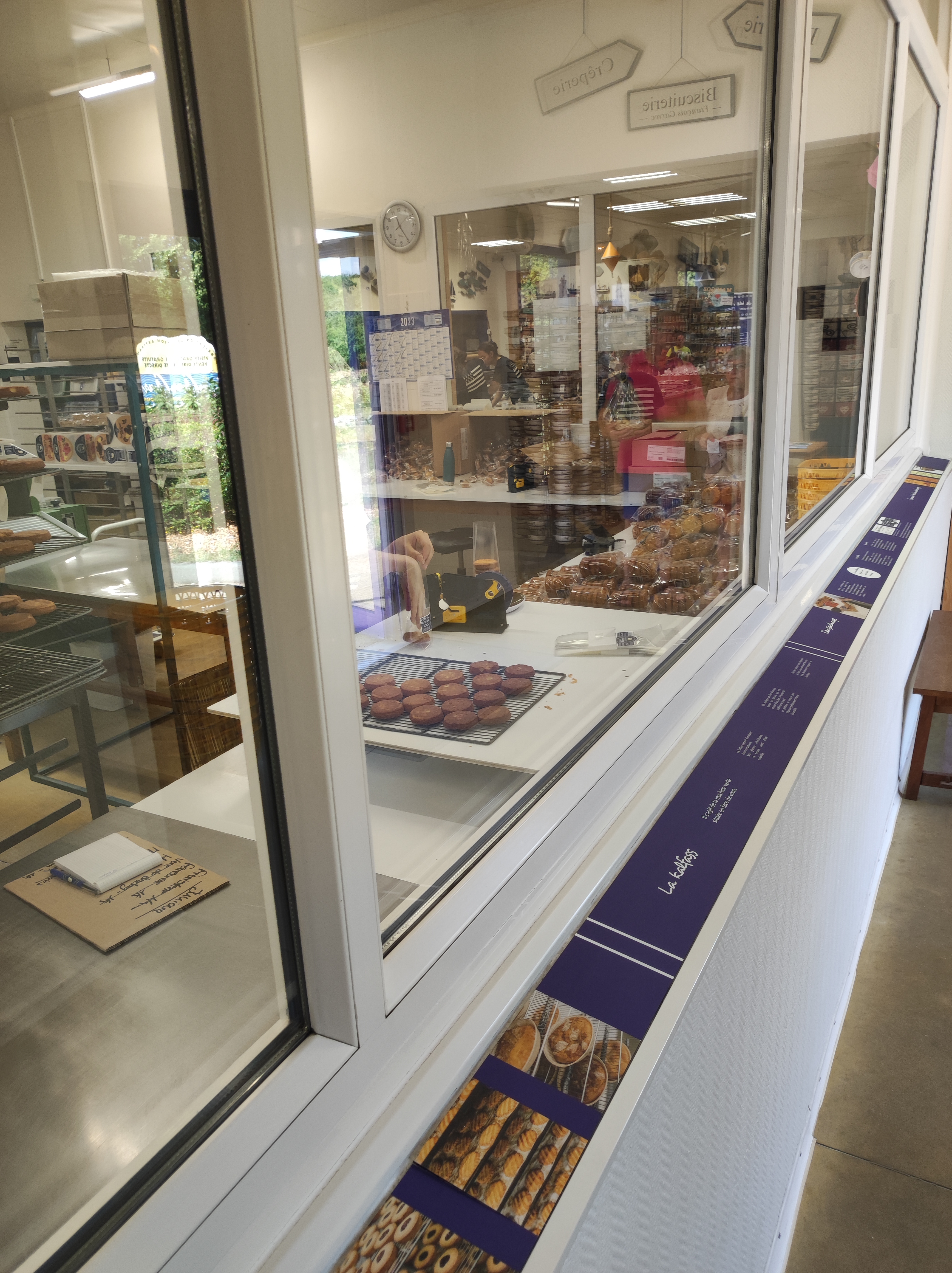 Cette biscuiterie est aménagé afin que l'on puisse voir les différentes étapes de fabrication des produits à travers des vitres, en bout de circuit, se trouve le magasin ou l'on peut acheter les gâteaux et crêpes sur toutes les formes, je vous conseille cette biscuiterie de taille artisanal, en plus les produits sont délicieux.